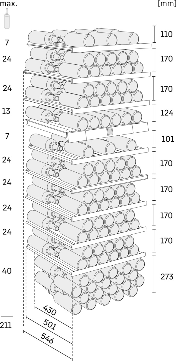 The built-in LED lighting highlights your wine collection in an energy-efficient manner, while the low noise level of just 38 dB ensures a comfortable atmosphere in your home.